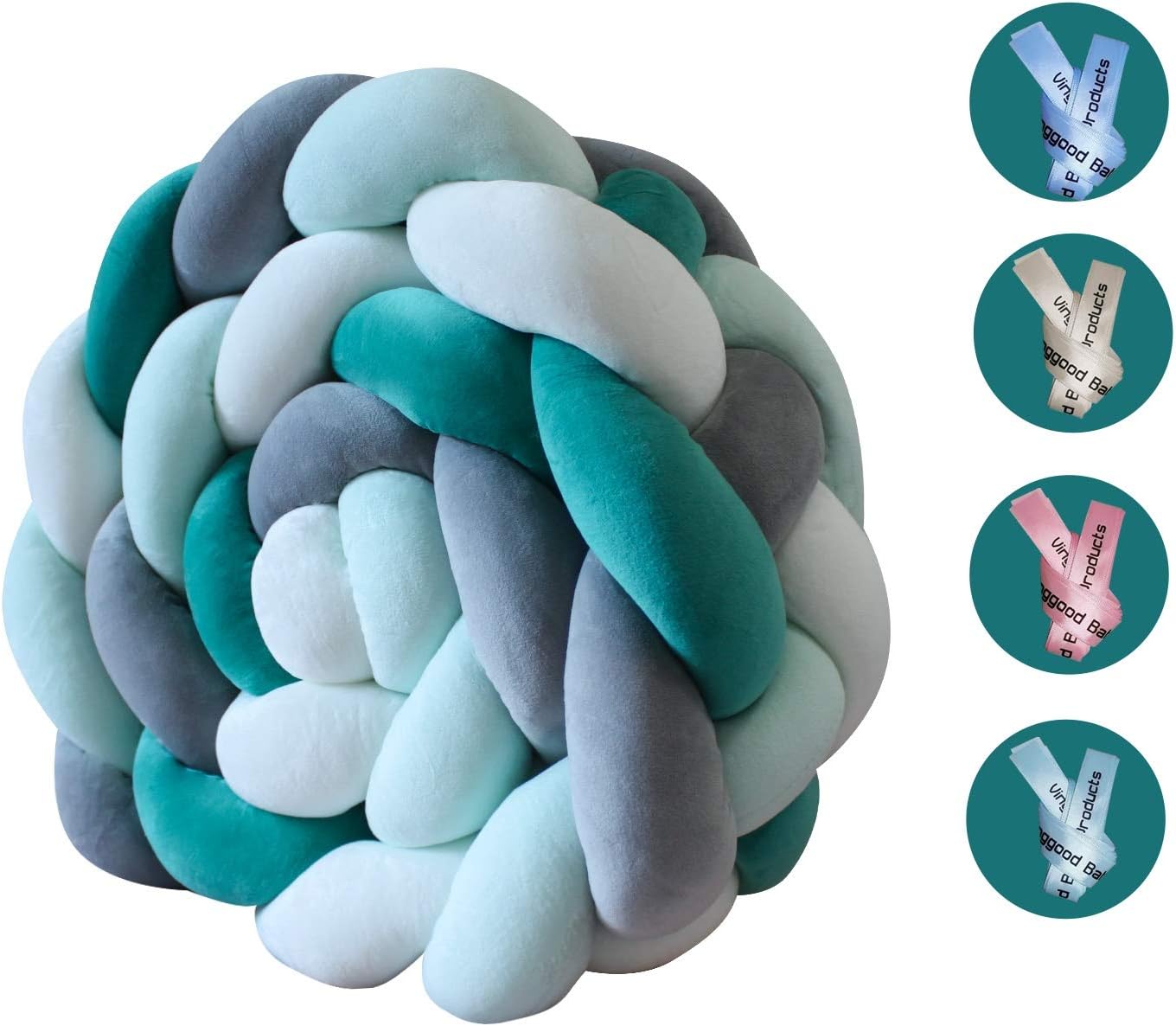 Vinggood Parure De Lit for Lit De Bébé Tresse Oreiller Décorations for Chambre De Bébé Pare-Chocs Tressés for Lit d'enfant (Color : White+Grey+D-Green+Green, Size : 220CM)