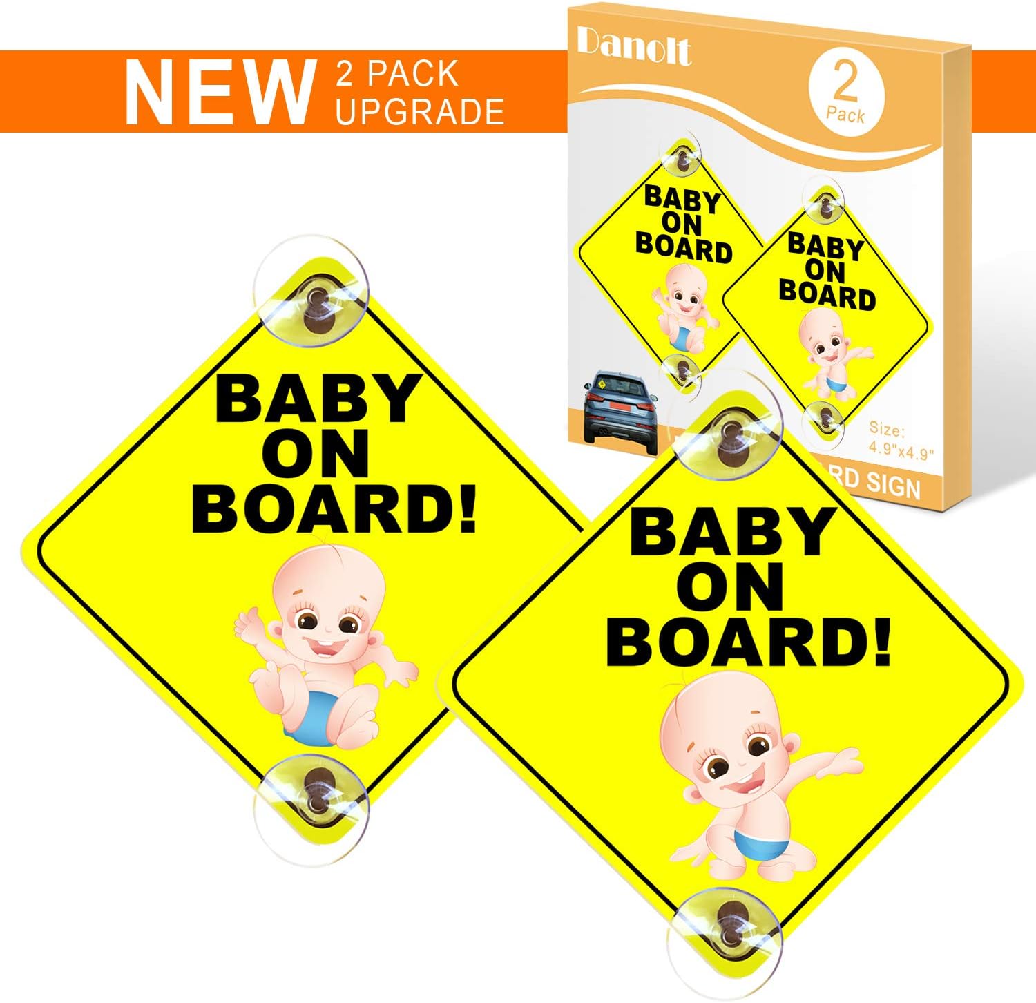 Danolt Bébé à Bord Signe pour Voiture, 2pcs Nouvelle Mise à Niveau épaissir Les Enfants Avertissement de sécurité Autocollant bidirectionnel Sucker avertissements pour conducteur, sans fondu