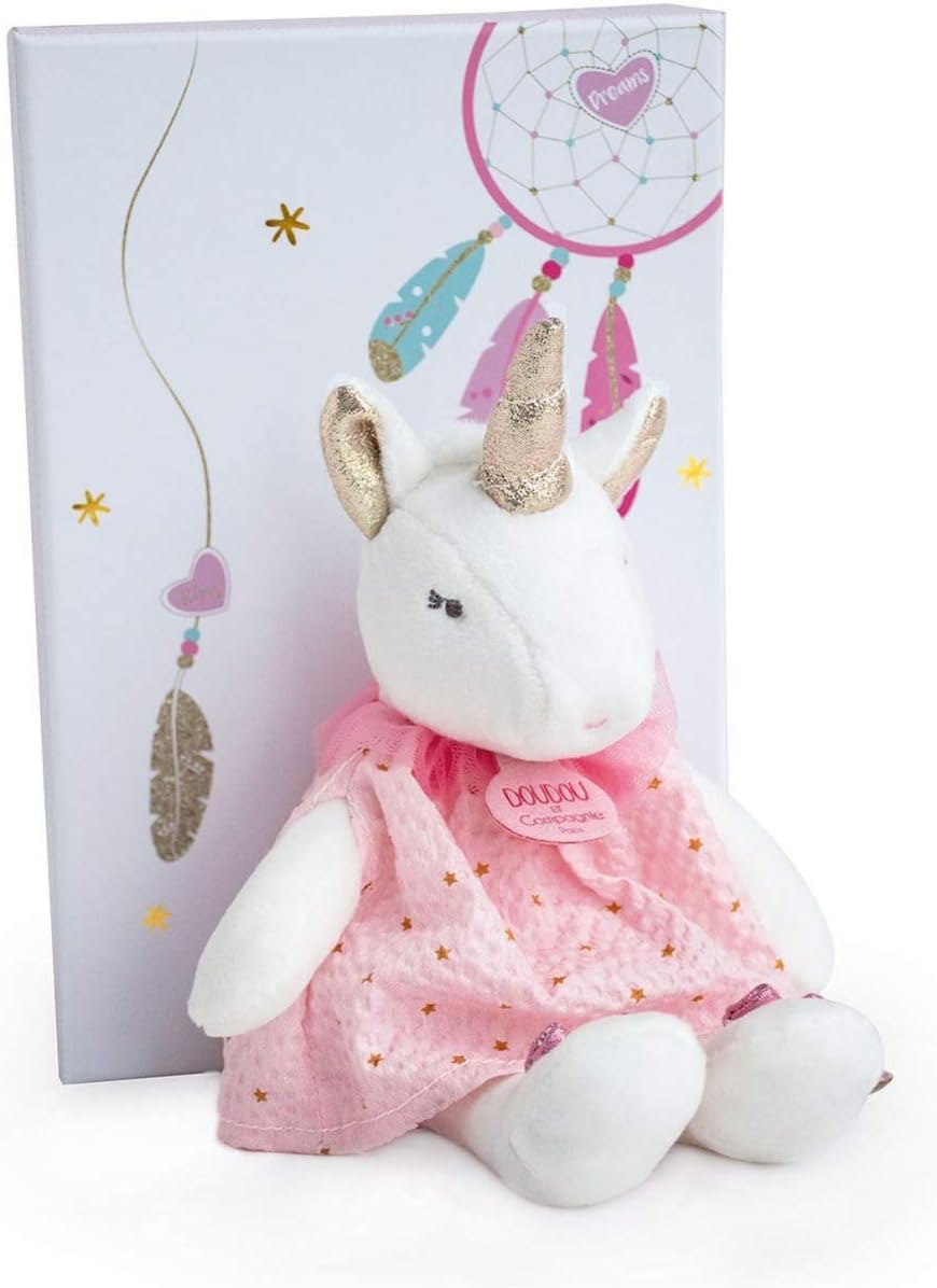 Du chic, du raffinement et de la féerie pour le plus joli des doudous. Tout en douceur et en coquetterie avec ses touches de tulle rose et de paillettes, cette adorable licorne blanche et rose veillera comme par magie sur tous les petits… pour que chaque instant ressemble à un doux rêve. Présenté dans une ravissante boîte, c’est le cadeau idéal à offrir dès la naissance. Lavable à 30°. inédit ! ce produit bénéficie de la garantie doudou. Grce à son numéro unique, doudou perdu est vite retrouvé ! Enregistrez votre doudou et découvrez toutes les garanties sur le site doudouetcompagnie.Com.
