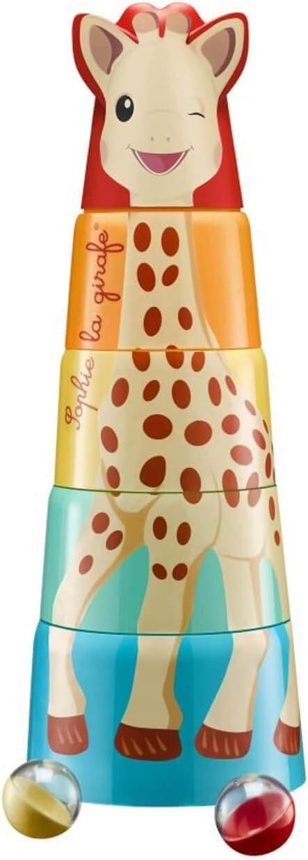 Un incontournable de réveil 3 en 1 ! a découvrir: 1 jeu de construction. 5 pièces à empiler, de la plus grande à la plus petite, permettant de développer la dextérité et la motricité fine de bébé. un puzzle: bébé s'amuse à reconstituer Sophie la girafe en alignant les différentes parties de son corps (tête, cou, pattes...). un jeu de balles: 2 balles avec des billes, à placer au sommet de la tour et qui dévalent les étages un par un grce au toboggan magique! toutes ces activités pour le plus grand bonheur de bébé.