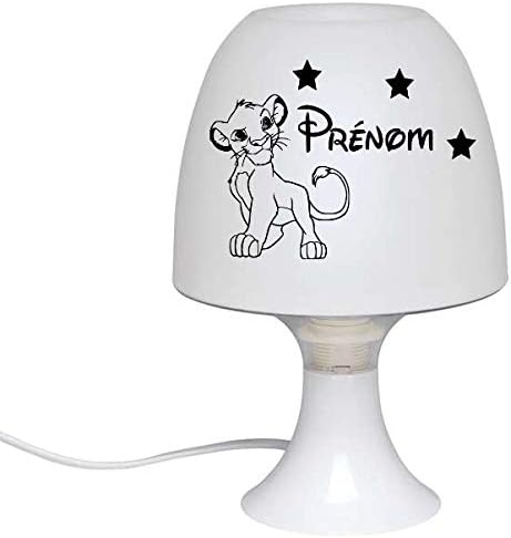 Life is like a rainbow - Lampe de chevet blanche pour enfant personnalisée avec dessin + prénom ++ Cadeau original pour Baptême, Anniversaire, Naissance, Noël ++ (Roi Lion)