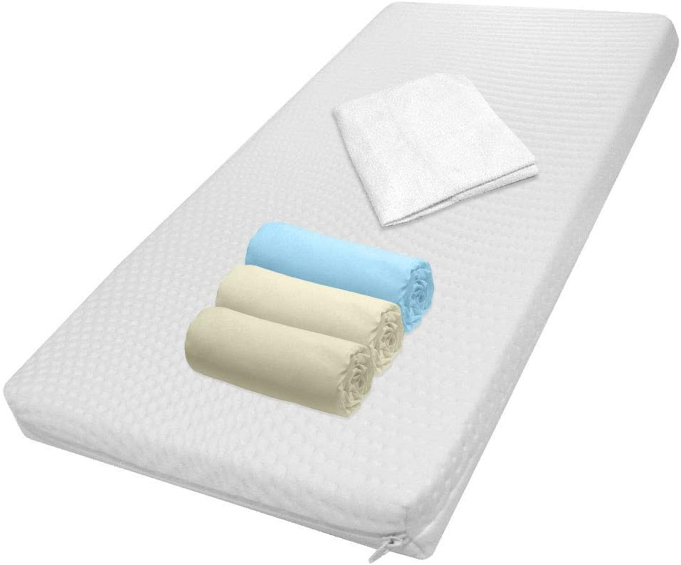 Modulit - Matelas Lit Bébé Tencel + 3 draps garçon + 1 alèse, Déhoussable, Pour landau 40x80, Fabrication Française