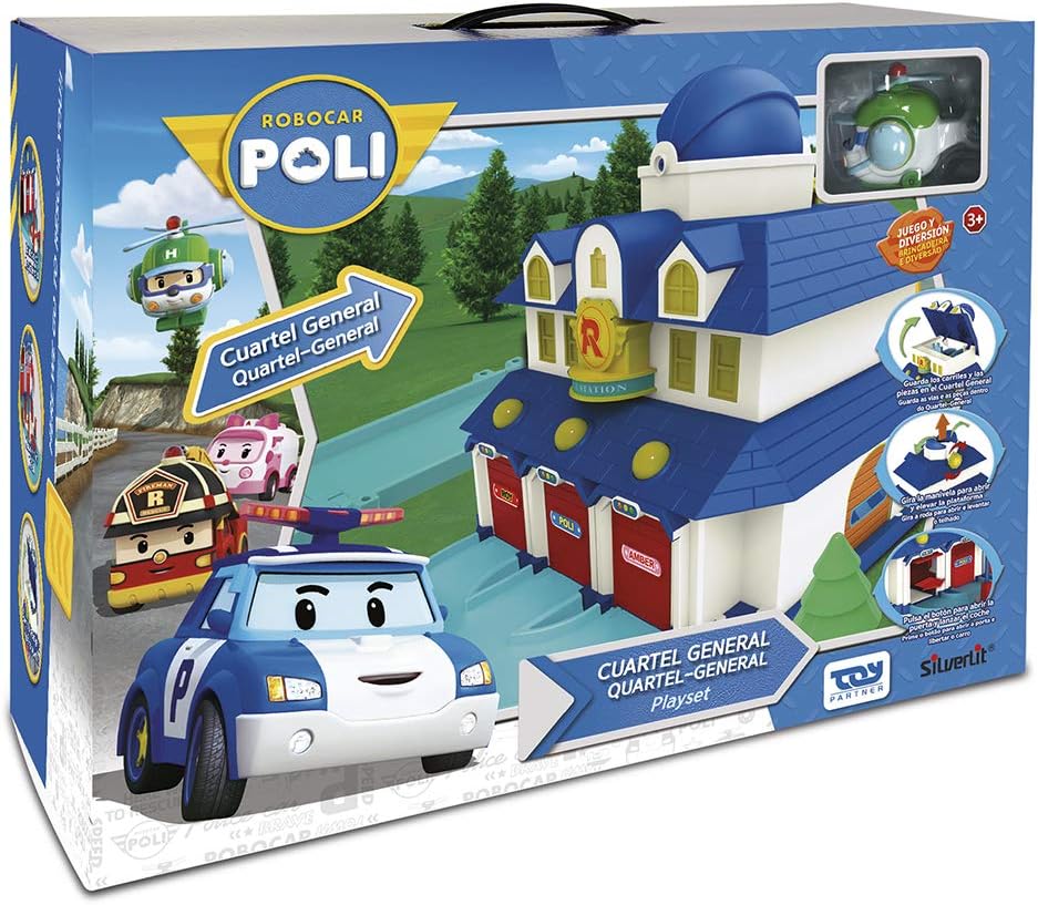 Description du produit: 100 % fidèle à la série, le quartier général est le repère des petits héros de la série. poli et ses amis s'y rassemble tous. surprise : le toit du bâtiment s'ouvre ! fonction "explusion" des voitures à partir des garages. dès 3 ans.