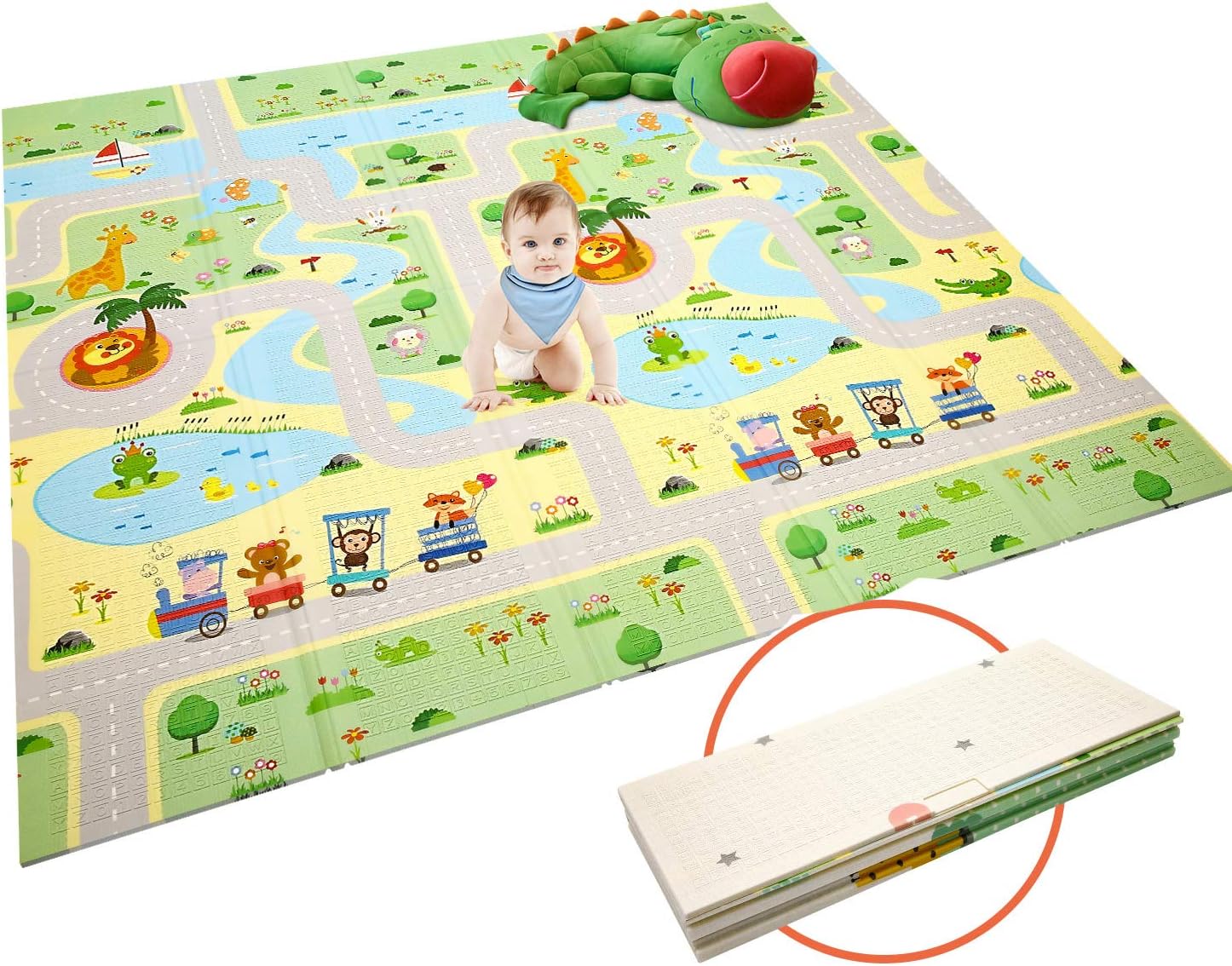 Tapis de Jeu pour Bébé, Tapis Pliable Imperméable Non Toxique pour Enfant Extra Grand, 180 x 200 x 1cm Tapis Épaissie (Forêt verte + zoo)